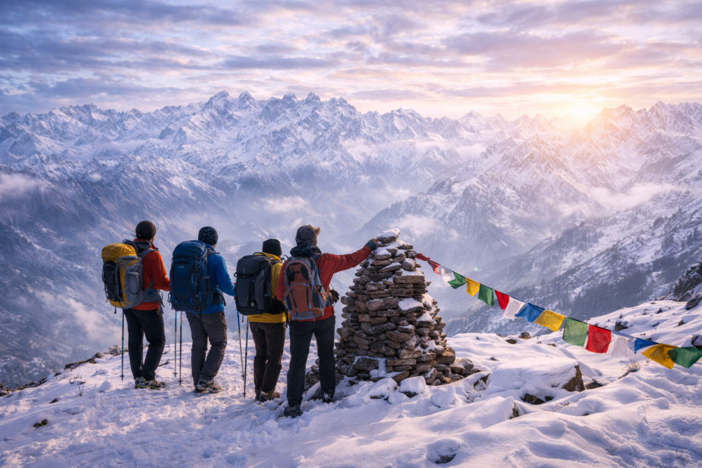 Experience one of the most beautiful winter treks in Uttarakhand. The Brahmatal Trek offers frozen lakes, snow-covered trails, dense oak forests, and stunning Himalayan views of Mt. Trishul and Nanda Ghunti.