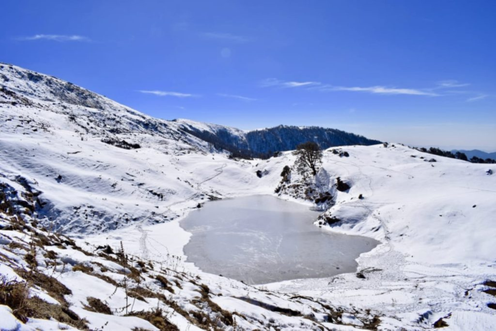 Brahmatal is famous for its frozen alpine lake and breathtaking panoramic Himalayan summit views. It is considered one of the best winter treks in India.